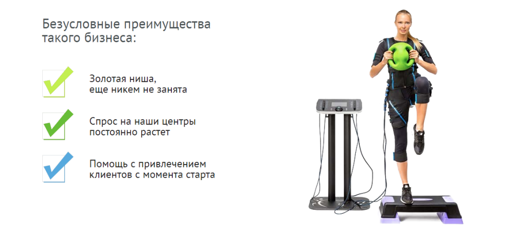 Мы прошли долгий путь, чтобы создать оптимальные программы EMS-тренировок и подобрать лучшее оборудование. Франчайзинговое предложение S&I fitness — это полная поддержка и помощь в создании уникального бизнеса.