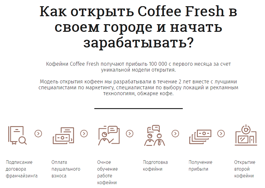 Франшиза COFFEE FRESH — это честный доход и прибыль с первого месяца работы. Бизнес-модель нашей кофейни разрабатывалась два года совместно с профессиональными маркетологами, и теперь мы готовы поделиться историей своего успеха с вами.